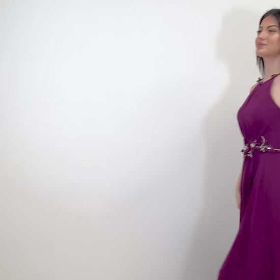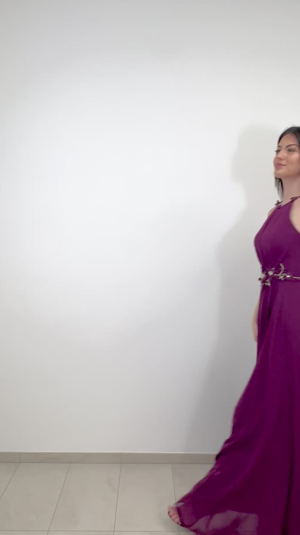 Dieses elegante, bodenlange Kleid aus leichtem Chiffon verleih jedem Anlass einen Hauch von Raffinesse. Die zarten Applikationen und Stickereien am Hals und an der Taille betonen die feminine Silhouette auf subtile Weise.
