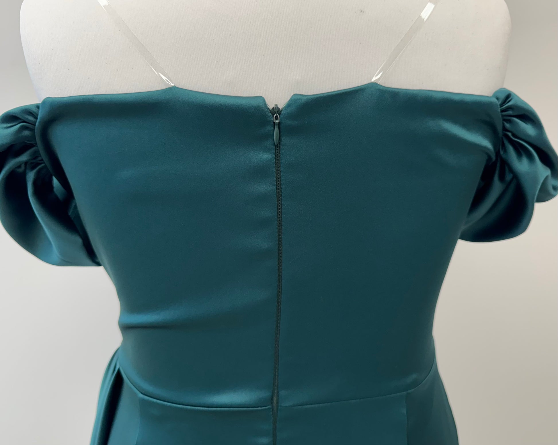 Dieses edle Abendkleid besticht durch seinen fließenden Satin und eine feminine, schulterfreie Schnittführung. Die gepolsterte Brustpartie sorgt für einen perfekten Halt und formt ein schönes Dekolleté. Seitliche Raffungen und Drapierungen betonen die Taille und verleihen dem Kleid eine elegante Silhouette. Die transparenten Träger sind optional nutzbar – sie können getragen oder abgenommen werden, je nach Wunsch. Ein Reißverschluss in der hinteren Mitte rundet das Design harmonisch ab.