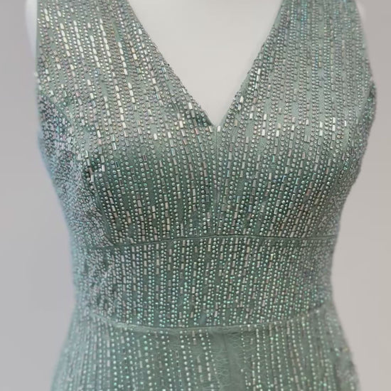 Glamouröses Maxikleid mit tiefem V-Ausschnitt und Glitzerakzenten