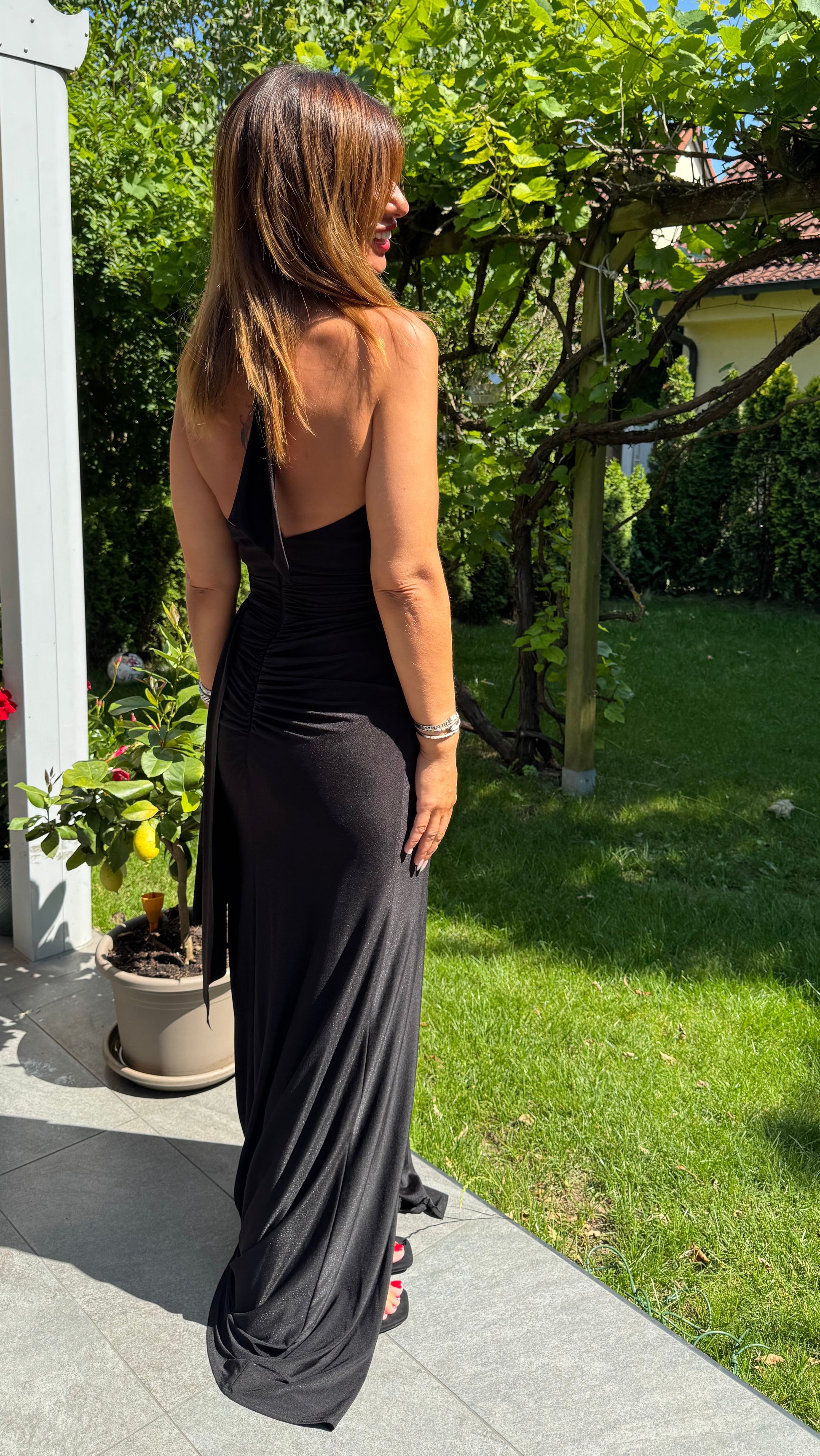 Elegantes Neckholder-Abendkleid mit Drapierung und Schlitz